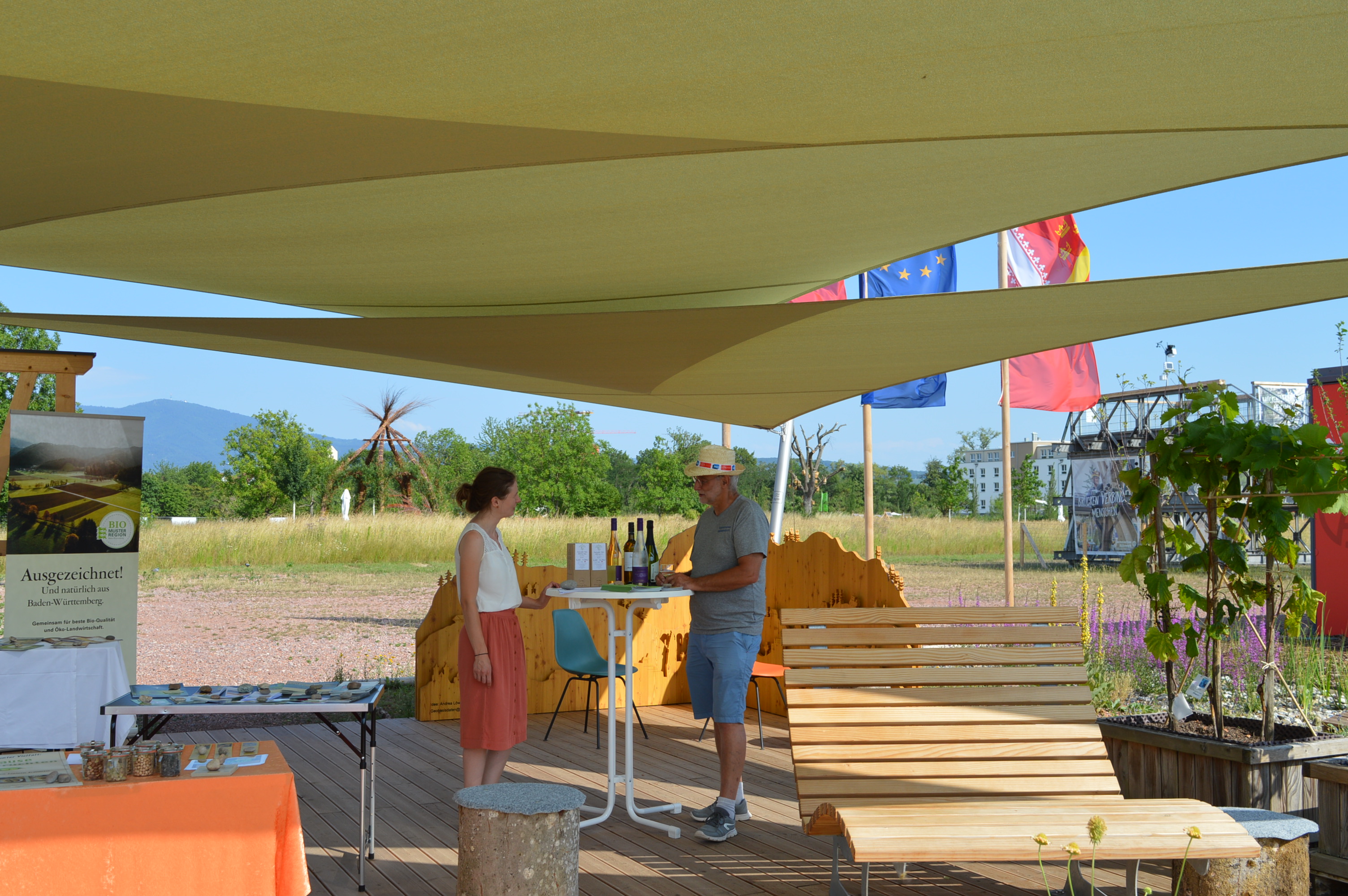 m 20. Juni 2022 konnten uns Besucherinnen und Besucher der Landesgartenschau in Neuenburg am „Treffpunkt Landkreis“ des Landkreises Breisgau-Hochschwarzwald treffen, sich über die Bio-Musterregion Freiburg informieren und unsere Kurzfilme anschauen. Neben einem „Teste Dein Wissen“-Quiz zum Thema regionale Hülsenfrüchte und Rezept-Lesezeichen zum Nachkochen zuhause, kam die Verköstigung von Piwi-Weinen aus der Region besonders gut an. Die Landesgartenschau läuft noch bis zum 03.10.. Der Treffpunkt Landkreis und der Fachbereich Landwirtschaft bieten vielfältiges Programm. Die Bio-Musterregion wird das nächste Mal wieder am 23.07. vertreten sein, dann am Treffpunkt Baden-Württemberg.