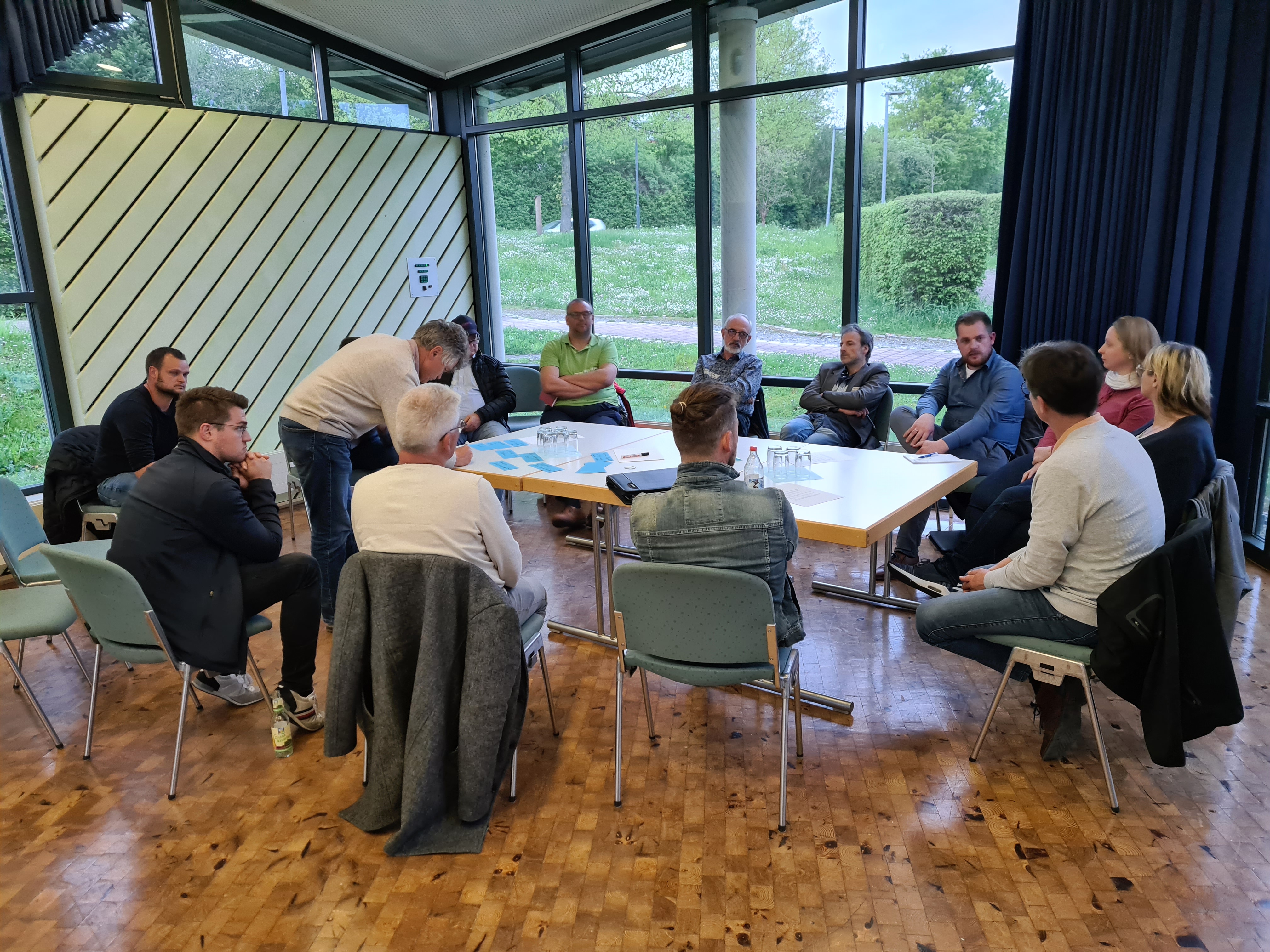 Nach einer Pause, die eine gute Chance bot miteinander ins Gespräch zu kommen, sind wir im zweiten Teil der Veranstaltung bereits konkret auf die von den Anwesenden vorab durchgegebenen Interessensgebiete eingegangen. Vier Top-Themen konnten wir herauskristallisieren und Arbeitsgruppen vorbereiten. In den Bereichen „Öffentlichkeitsarbeit“, „Vermarktung“, „Weiterverarbeitung“ und „Boden“ haben wir an dem Abend in kleinen Gruppen diskutiert und weitergedacht. Abschließend wurden die Ergebnisse jeder Gruppe dem gesamten Gremium präsentiert. Eines der Kernergebnisse des offenen Beirats, war der Wunsch nach einem gemeinsamen Label/Logo für alle Betriebe und die Produkte der gesamten Bio-Musterregion Heilbronner Land.