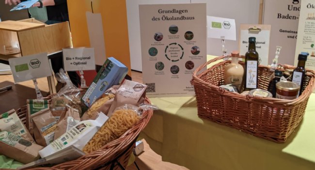 Am 1. März beteiligte sich die Bio-Musterregion mit einem Infostand an den landesweiten Ernährungstagen. Die Gäste im Verdi Bildungszentrum in Mosbach konnten an dem Tag viele Tipps zu Einkauf und Vorratshaltung und allerlei Infos über Bio-Lebensmittel mitnehmen.