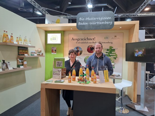 Den Auftakt machte im Februar der gemeinsame Auftritt der 14 Bio-Musterregionen auf der Biofach in Nürnberg. Die Bio-Musterregionen präsentierten sich dort am Baden-Württembergischen Gemeinschaftsstand. Es wurden dort Projekte und Produkte der Regionen vorgestellt. Aus der Region Neckar-Odenwald waren es die beiden Projekte „kLasSE Fleisch“ und „Odenwälder Bio Genuss Taschen“. Interessierte konnten mit den Regionalmanager*innen ins Gespräch kommen und sich über Aktuelles aus den Regionen informieren.