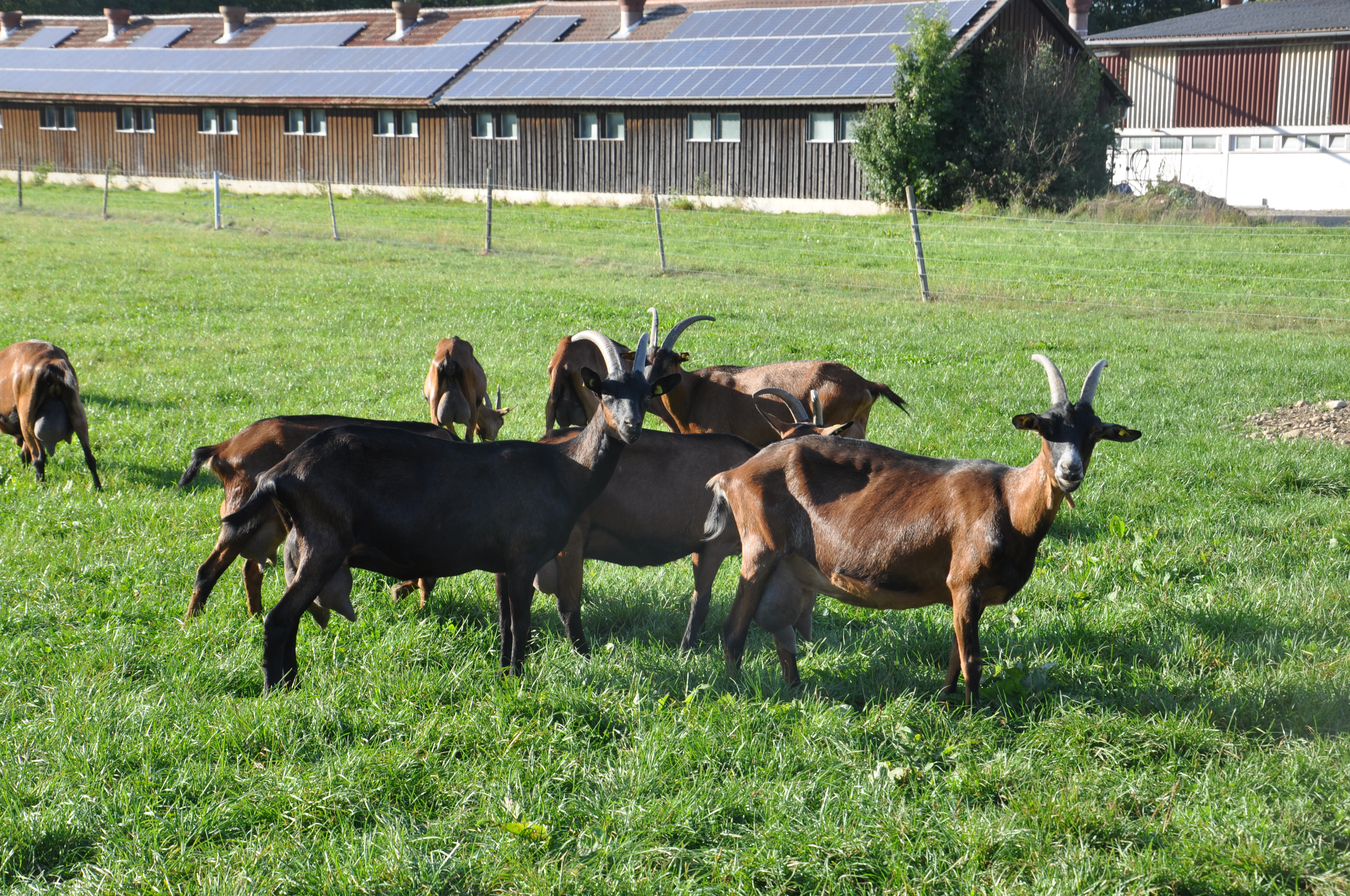 Durch das Rot- und Illertal radelnd erreichten die Teilnehmenden am Nachmittag den Bioland-Ziegenhof Makary in Unteropfingen. Inzwischen wird dort auf dem Betrieb auch selbst gekäst, nachdem die zuvor belieferte Molkerei vor vier Jahren keine Ziegenmilch mehr annahm. Deswegen musste sich Monika Makary das Käsen in kürzester Zeit zum größten Teil selbst beibringen und veredelt nun die Ziegenmilch an drei Tagen zu unterschiedlichsten Käseleckereien wie der Bergziege, die Milde Ziege oder auch Feta und Camembert, die alle auch verkostet werden konnten. Das Gras zur Heubereitung wird insektenschonend mit einem Doppelmesser-Mähwerk gemäht. Um die Futterverluste zu minimieren, wird es nur geschwadet und dann in einer Box mit Warmluft getrocknet.