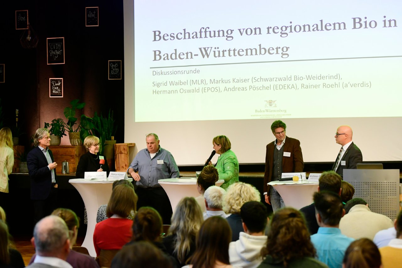 Zahlreiche Bio-Expertinnen und -Experten, Küchenpraktikerinnen und -praktiker sowie Vertreterinnen und Vertreter aus der Wissenschaft und der Verwaltung kamen in Stuttgart zusammen, um Ideen und Motivationen zum Handeln im Bereich „regionales Bio aus Baden-Württemberg“ zu erörtern.