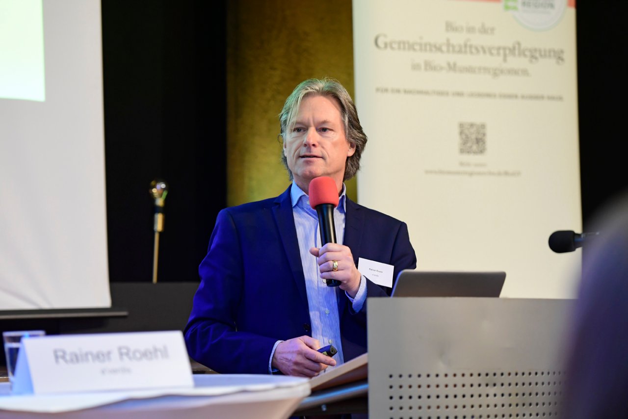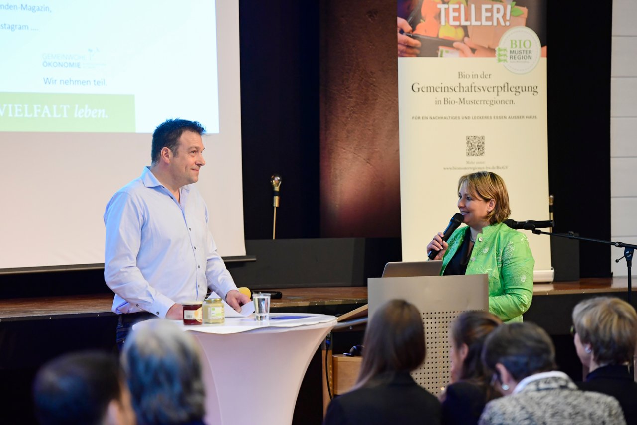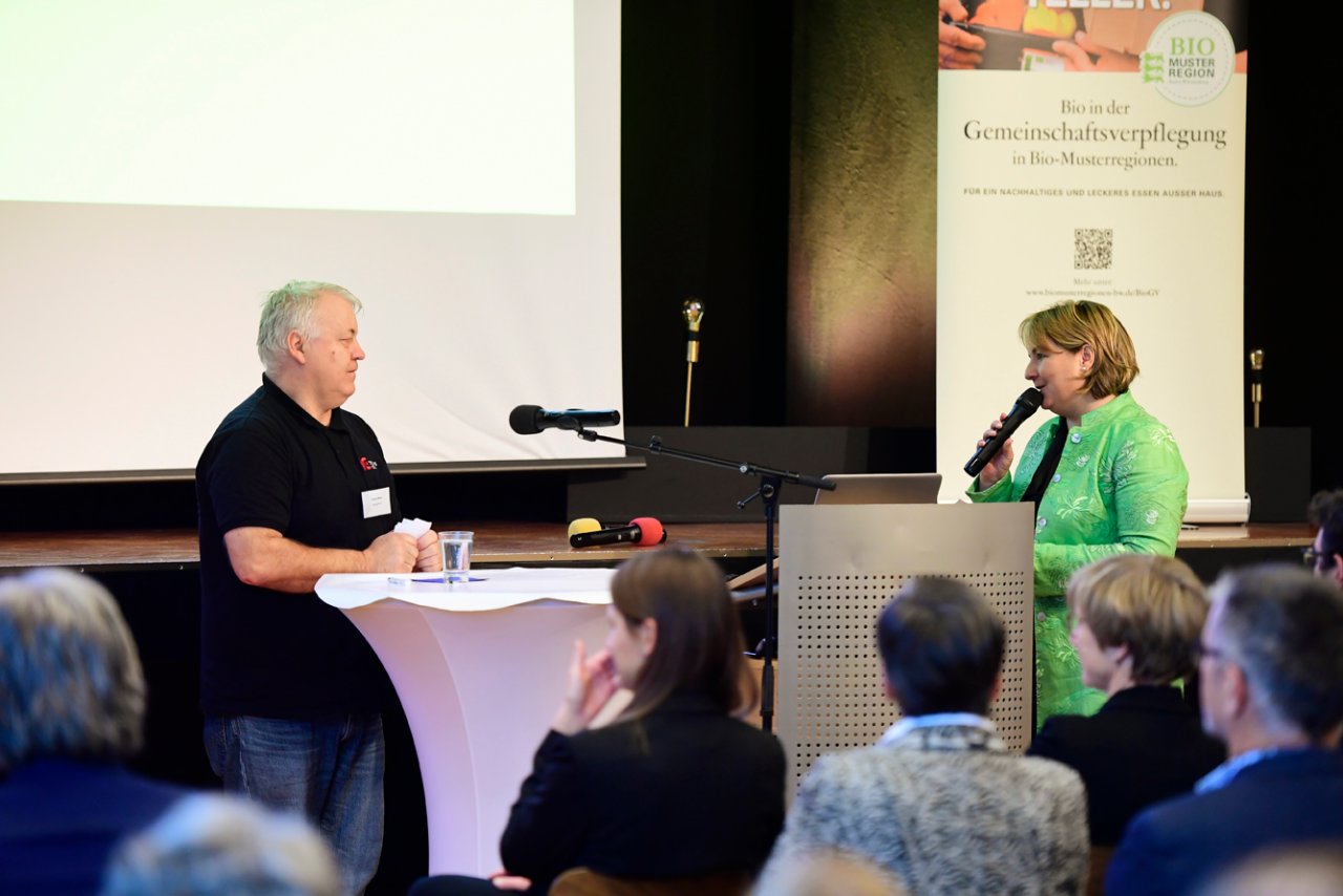 Gemeinsam mit Staatssekretärin Sabine Kurtz MdL, die in Vertretung für Minister Peter Hauk MdL anwesend war, wurde beleuchtet, wie eine ausgewogene und nachhaltige Gemeinschaftsverpflegung gelingen kann. Dafür gab es neben der Vorstellung der Ergebnisse aus dem Projekt „Bio in der Gemeinschaftsverpflegung in Bio-Musterregionen“, verschiedene Best Practice Beispiele zu Transformationsprozessen in der Küche. Abgerundet wurde die Veranstaltung durch eine Diskussionsrunde zum Thema „Beschaffung von regionalem Bio in Baden-Württemberg“.