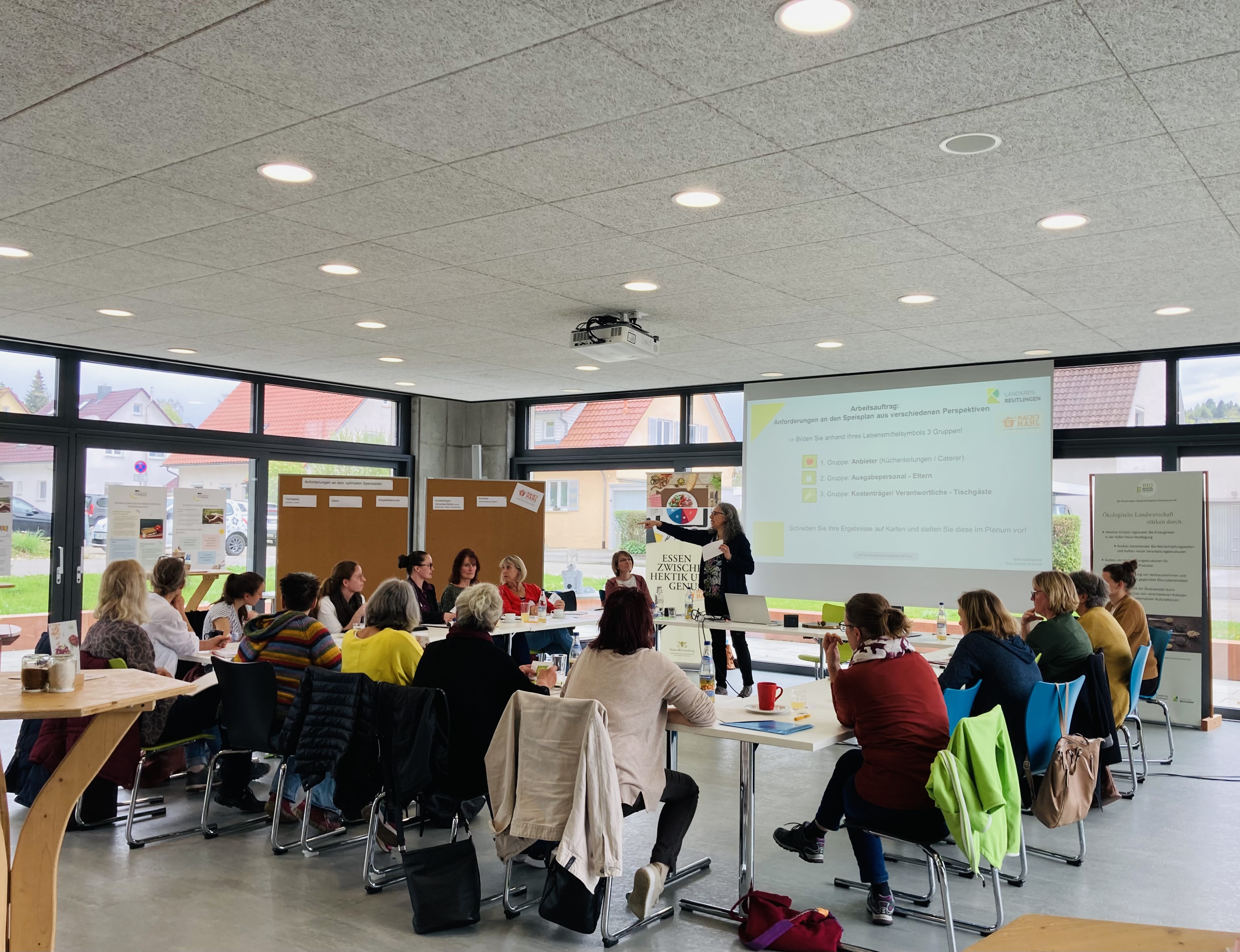 „Wir sind dabei! - Regionale Bio-Vielfalt auf den Teller“ ist das Motto der Bio-Musterregion Biosphärengebiet Schwäbische Alb. Bei einer Veranstaltung zum Thema „Speiseplangestaltung in Schulen“ hat die Bio-Musterregion gemeinsam mit dem Kreislandwirtschaftsamt Reutlingen aufgezeigt, dass durch Stellschrauben, wie beispielsweise die Optimierung des Menüplans, genau dies möglich gemacht werden kann.