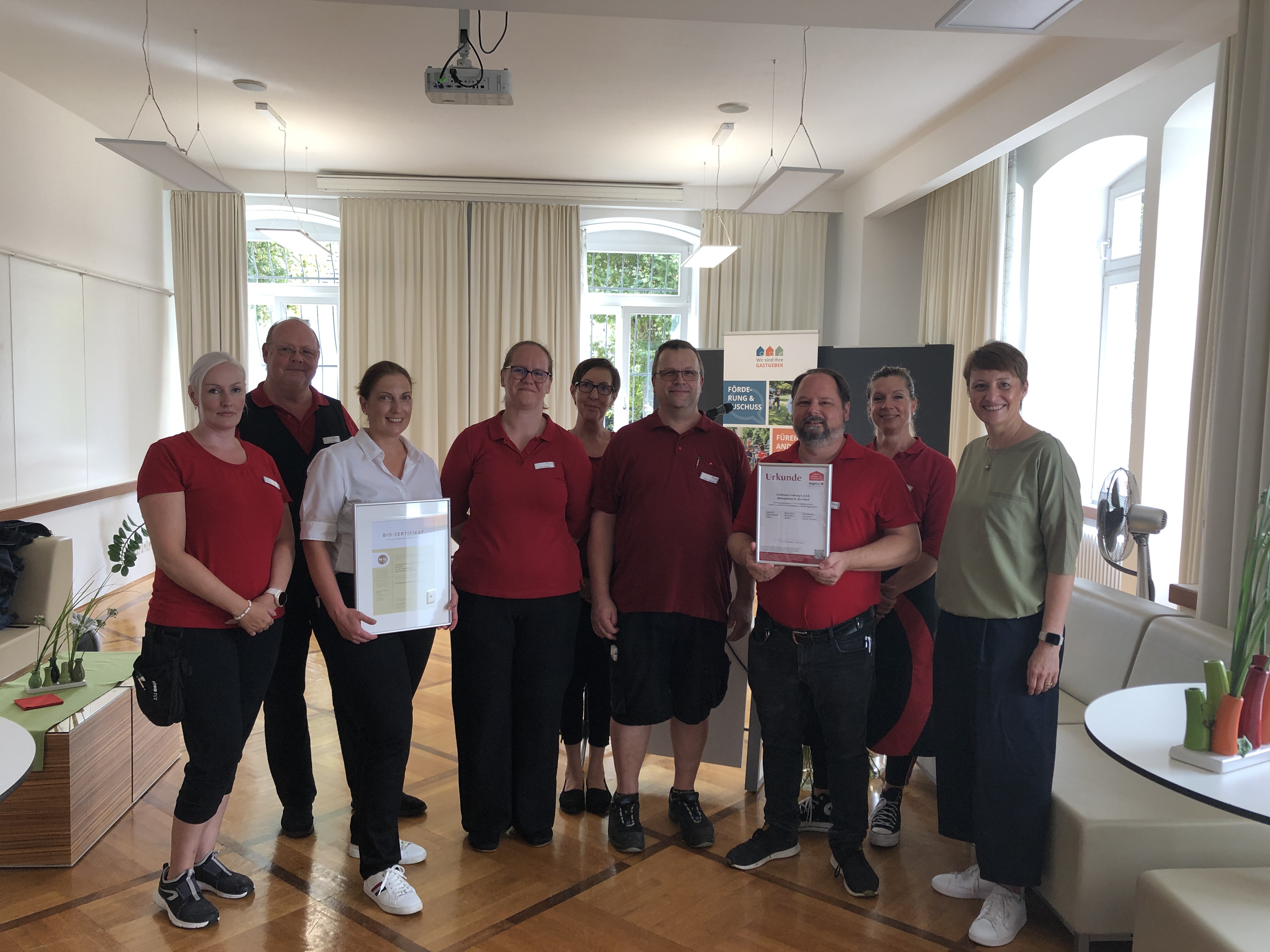 Am 9. September bekam das Bildungshaus St. Bernhard in Rastatt feierlich seine erste Bio-Zertifizierung mitsamt der Auszeichnung in Bronze überreicht. Zugleich wurde auch die degeFest-Zertifizierung verliehen. Das Bildungshaus war eines der an der Bio-Regio-Studie der Erzdiözese Freiburg beteiligten Häuser, wodurch der vermehrte Einsatz von regionalen Bio-Lebensmitteln sowie die Bio-Zertifizierung angestoßen wurde. Die Bio-Musterregion gratuliert ganz herzlich!