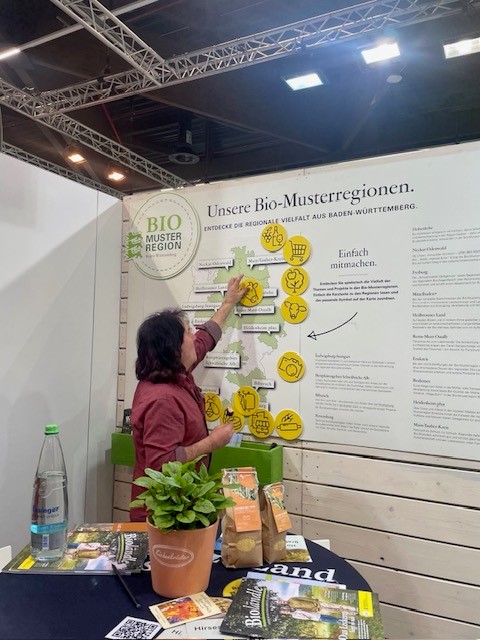 Die Bio-Musterregion Freiburg war auch in diesem Jahr gemeinsam mit den Regionalmanager*innen der 13 weiteren Bio-Musterregionen in Baden-Württemberg mit einem gemeinsamen Stand auf der BIOFACH vertreten. Der Austausch mit Fachbesucher*innen, Produzent*innen und Händler*innen bot eine wertvolle Gelegenheit, die regionale Bio-Landwirtschaft und ihre Projekte einem internationalen Publikum vorzustellen.