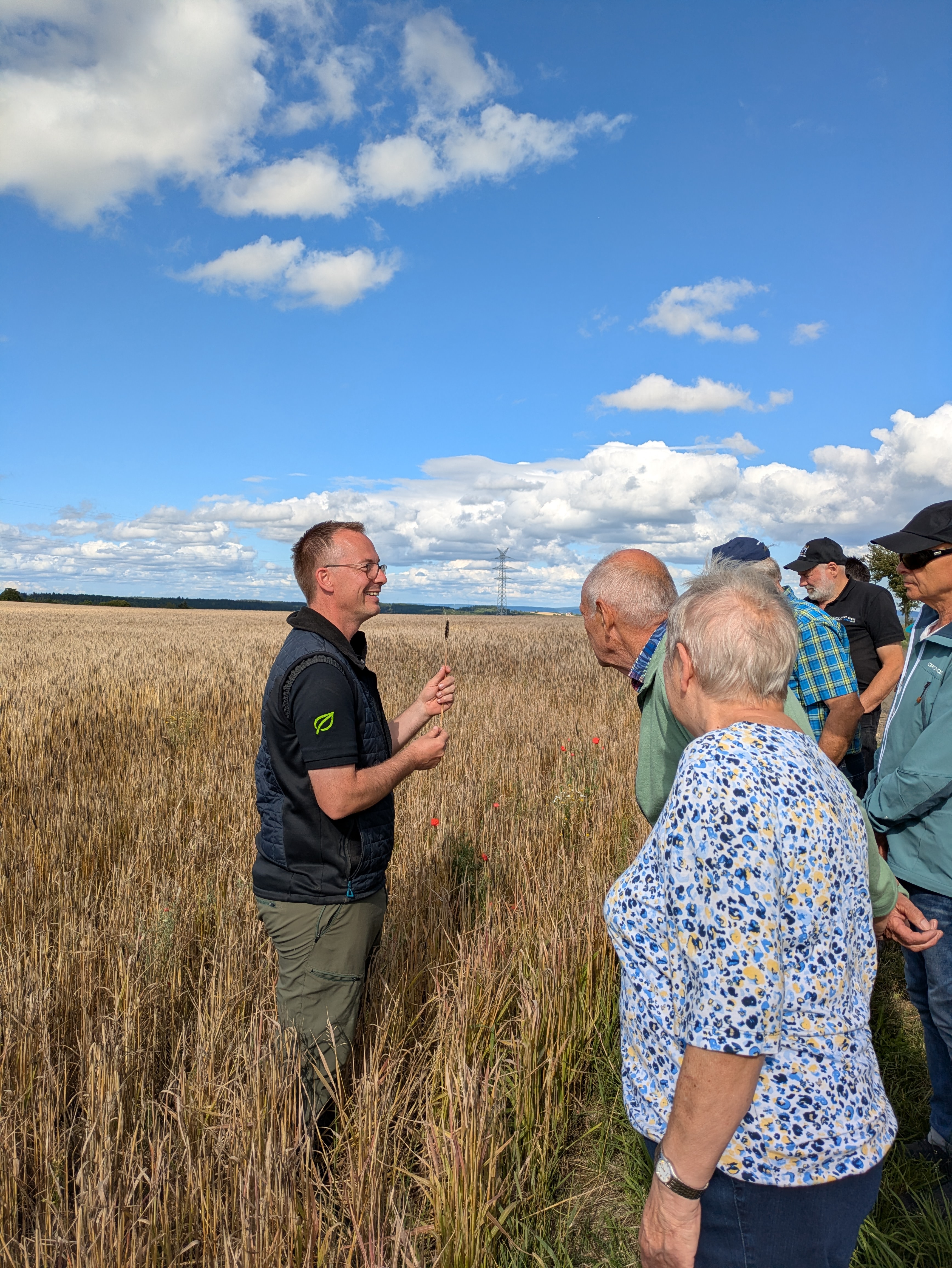 Ein weiteres Highlight waren Spezialkulturen wie Einkorn, Dinkel in Mischsaat, Hafer und Kleegras – angebaut mit moderner Technik wie einer Sämaschine, die mehrere Saaten gleichzeitig ausbringen kann. Die Besichtigung machte aber auch Herausforderungen deutlich: Zum Beispiel fehlt es für Buchweizen noch an regionalen Verarbeitungsstrukturen.