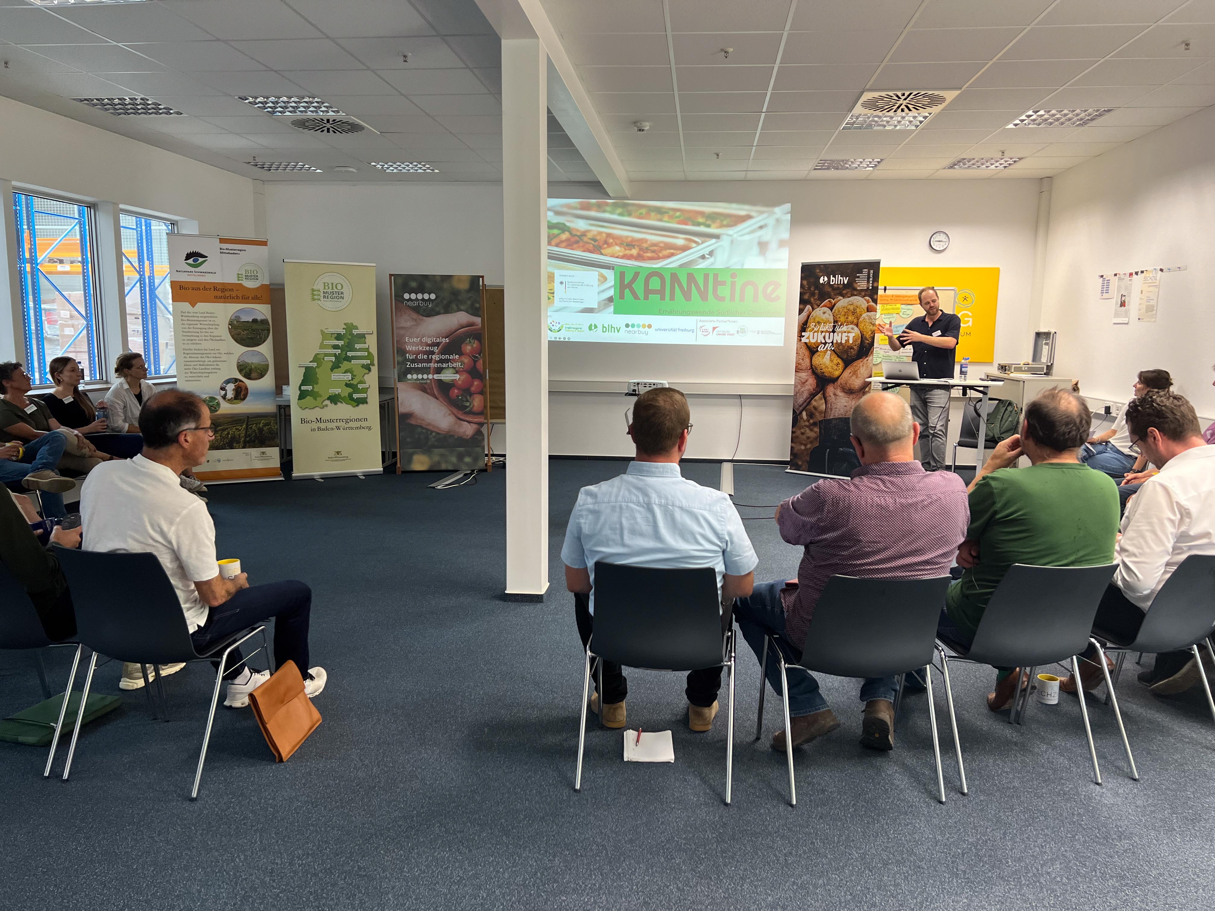 Am 15. Juli kamen 21 engagierte Vertreterinnen und Vertreter aus Landwirtschaft, Verarbeitung, Logistik und Handel zu unserer zweiten „Region vernetzt“-Veranstaltung zusammen. Organisiert vom Badischen Landwirtschaftlichen Hauptverband (BLHV) in Zusammenarbeit mit den Bio-Musterregionen Freiburg und Mittelbaden+ sowie nearbuy im Rahmen des Projekts KANNtine, lag der Schwerpunkt diesmal auf der regionalen Logistik und der Erfassung der Bedarfe der Region, um den Aufbau regionaler Wertschöpfungsketten zu fördern. Das Schulungszentrum drei100sechzig im Freiburger Industriegebiet Nord bot – mit seinem Blick auf die angrenzende Lagerhalle – den idealen Rahmen für einen intensiven, praxisnahen Austausch.
