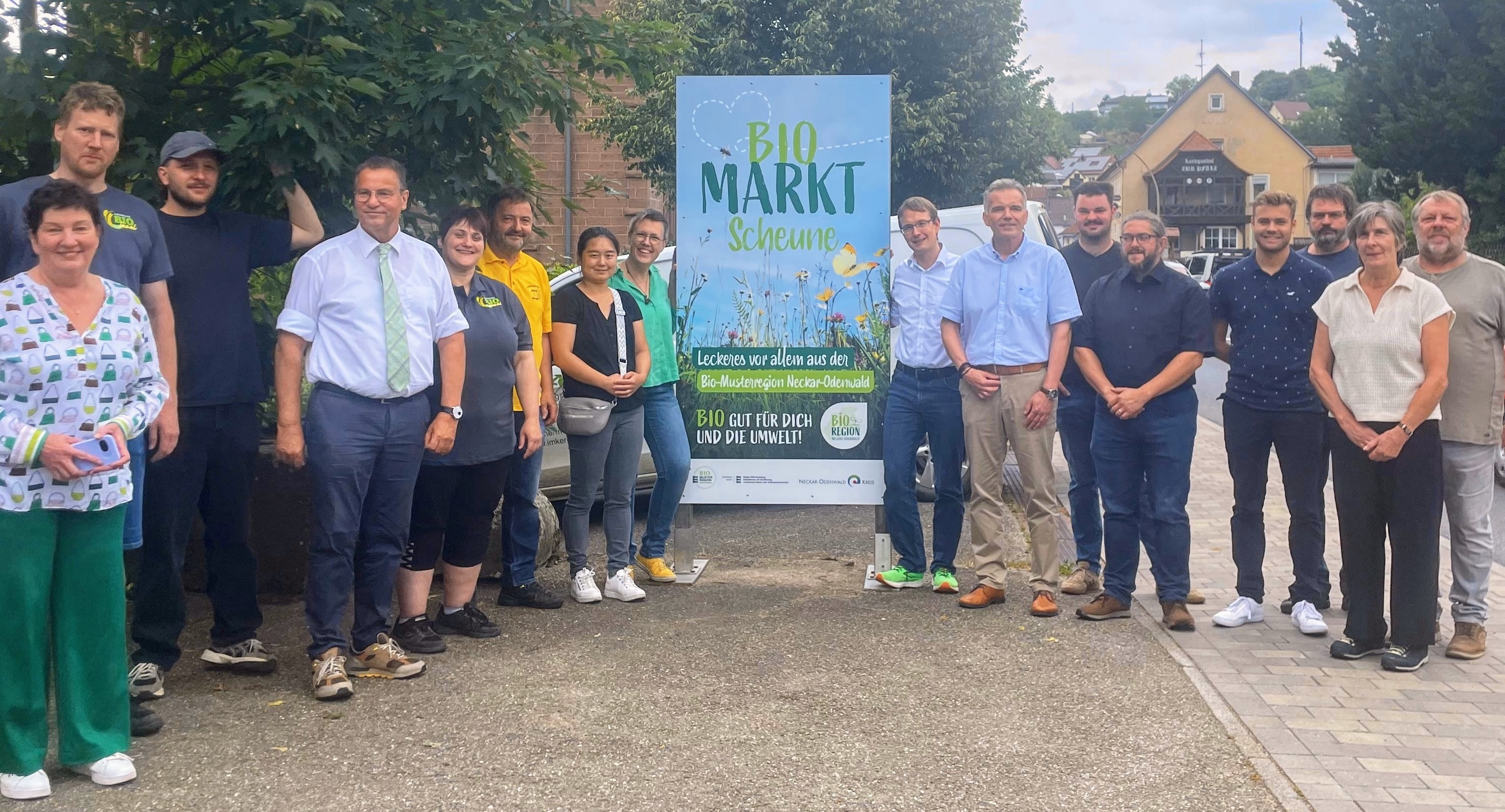 Ein Geschenk zum 5. Geburtstag gab es auch: Das Hinweisschild an der B27 wurde erneuert. Das neue Schild mit dem Slogan „Bio, gut für dich, gut für die Umwelt“ verweist auf den positiven Beitrag der Bio-Landwirtshaft zur Biodiversität.