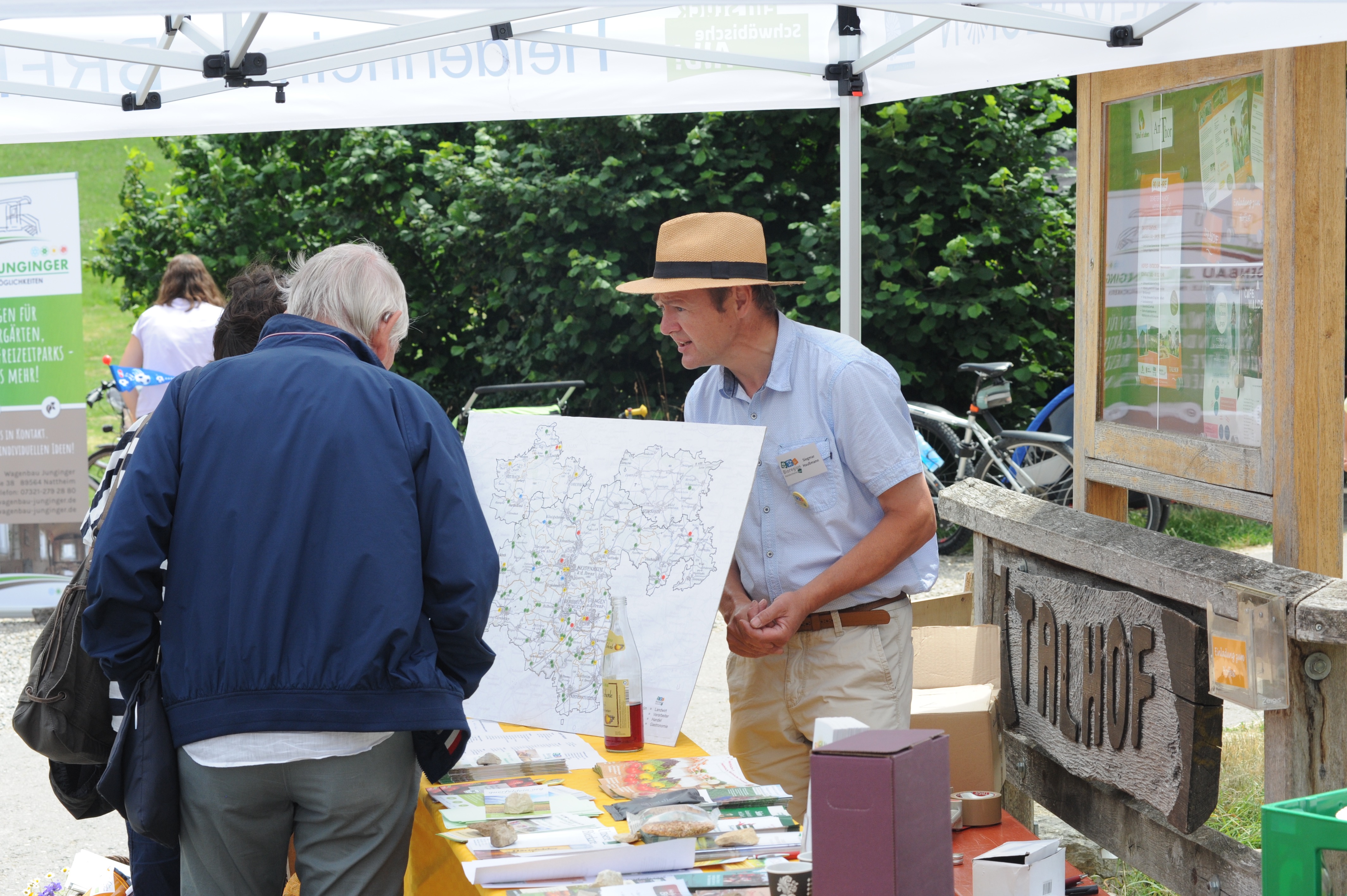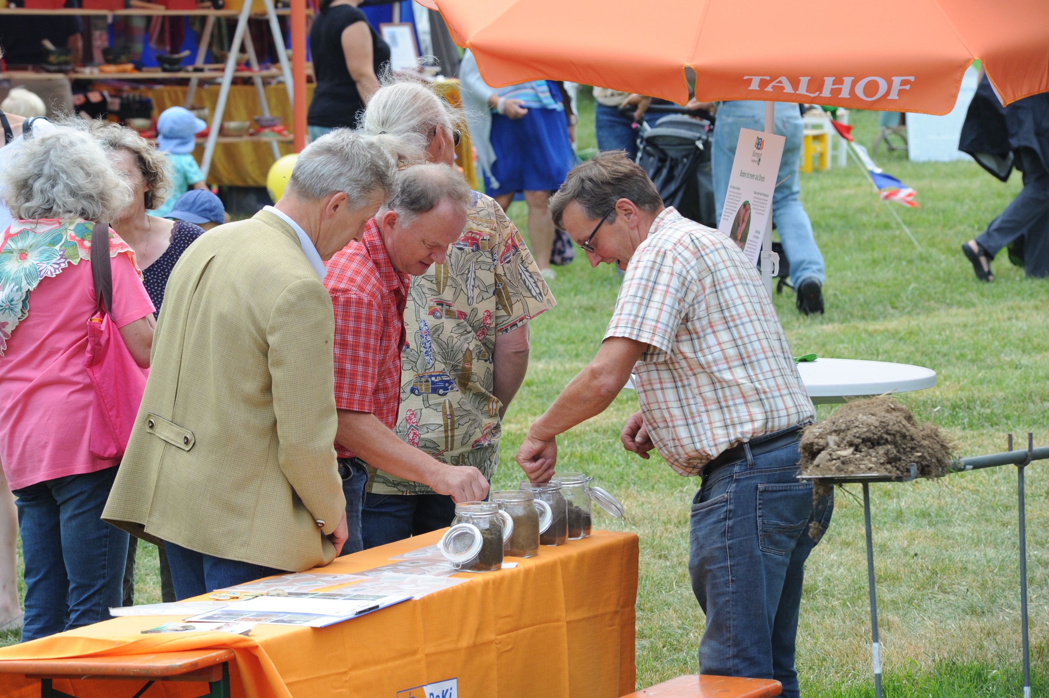 Zum 90. Geburtstag des Talhofs in Heidenheim, einem der ältesten Demeterhöfe weltweit, erklärten Expertinnen und Experten aus der Bio-Musterregion den Besucher*innen, dass für 1kg Käse 10l Milch gebraucht werden. Die Milch kommt von der Kuh, die dafür jedes Jahr ein Kalb zur Welt bringt. Um beide gesund zu ernähren, bekommen sie nahrhaftes Futter wie Gras und Kräuter von der Wiese. Ein fruchtbarer Boden bildet die Voraussetzung für solch nährstoffreiche Pflanzen. Die Gäste erfuhren also, was hinter unseren fertigen Lebensmitteln steckt und welch große Bedeutung jede Station im Kreislauf eines Bauernhofs hat.