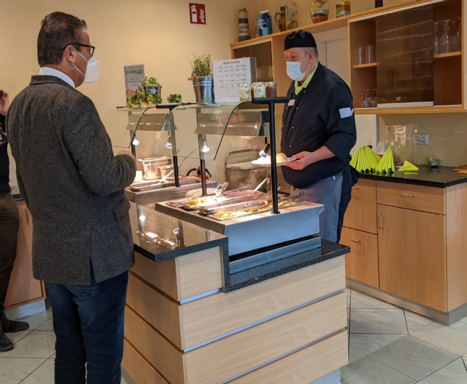 Anschließend konnten sich die Gäste in der Kantine selbst von der Qualität des Essens überzeugen. Ralf Bente, Koch vom "Apetito"-Catering bei AZO, teilte persönlich die Speisen aus.