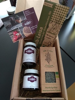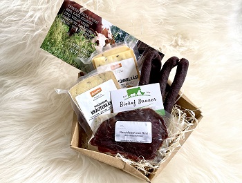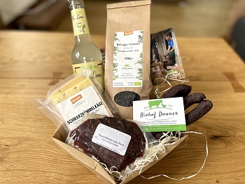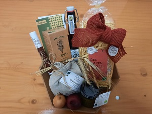 und als Botschaft nach außen. Viele (Hof-)Läden in der Bio-Musterregion Heidenheim plus bieten die Geschenkkörbe bereits an.