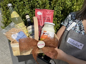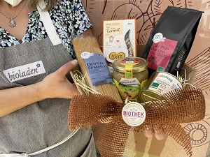 unserem Bio-Laden gibt. Unser Sortiment ist bevorzugt regional. Die Zusammenstellung erfolgt nach Ihren Wünschen.