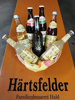 und Dinkelino von der Kornkreis Erzeugergemeinschaft mit Sitz in Hürben, Haldino Erfrischungsgetränk und (alkoholfreies) Bier von
