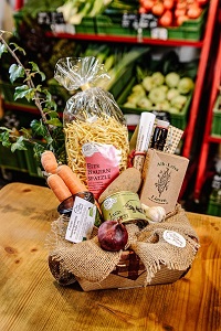 Die Geschenkle: Unseren Geschenkkorb können Sie frei nach Ihren Wünschen mit unseren Getränken und heimischen Bioprodukten bestücken.