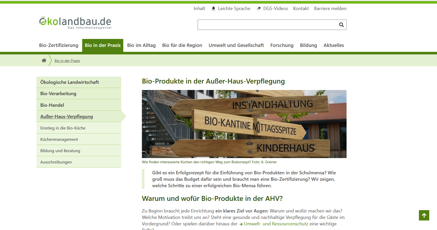 Wichtige Meilensteine bilden die Bio-Zertifizierung und die Zertifizierung nach den Qualitätsstandards der Deutschen Gesellschaft für Ernährung e. V. (DGE) für die Verpflegung. Mithilfe dieser Zertifizierungen können die teilnehmenden Einrichtungen, Betriebe und Caterer ihren Erfolg messen und die Qualität ihres Speisenangebots nach „außen“ sichtbar machen.