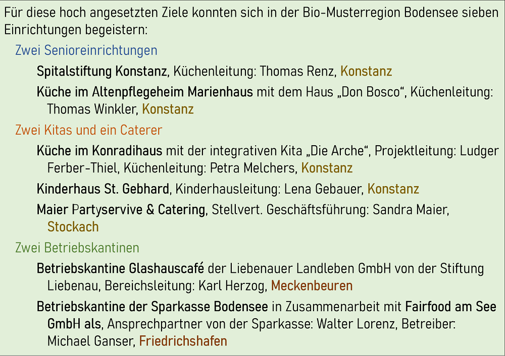 der Bio-Musterregionen Biberach, Bodensee und Ravensburg sowie der Ravensburger Veranstaltungsgesellschaft.