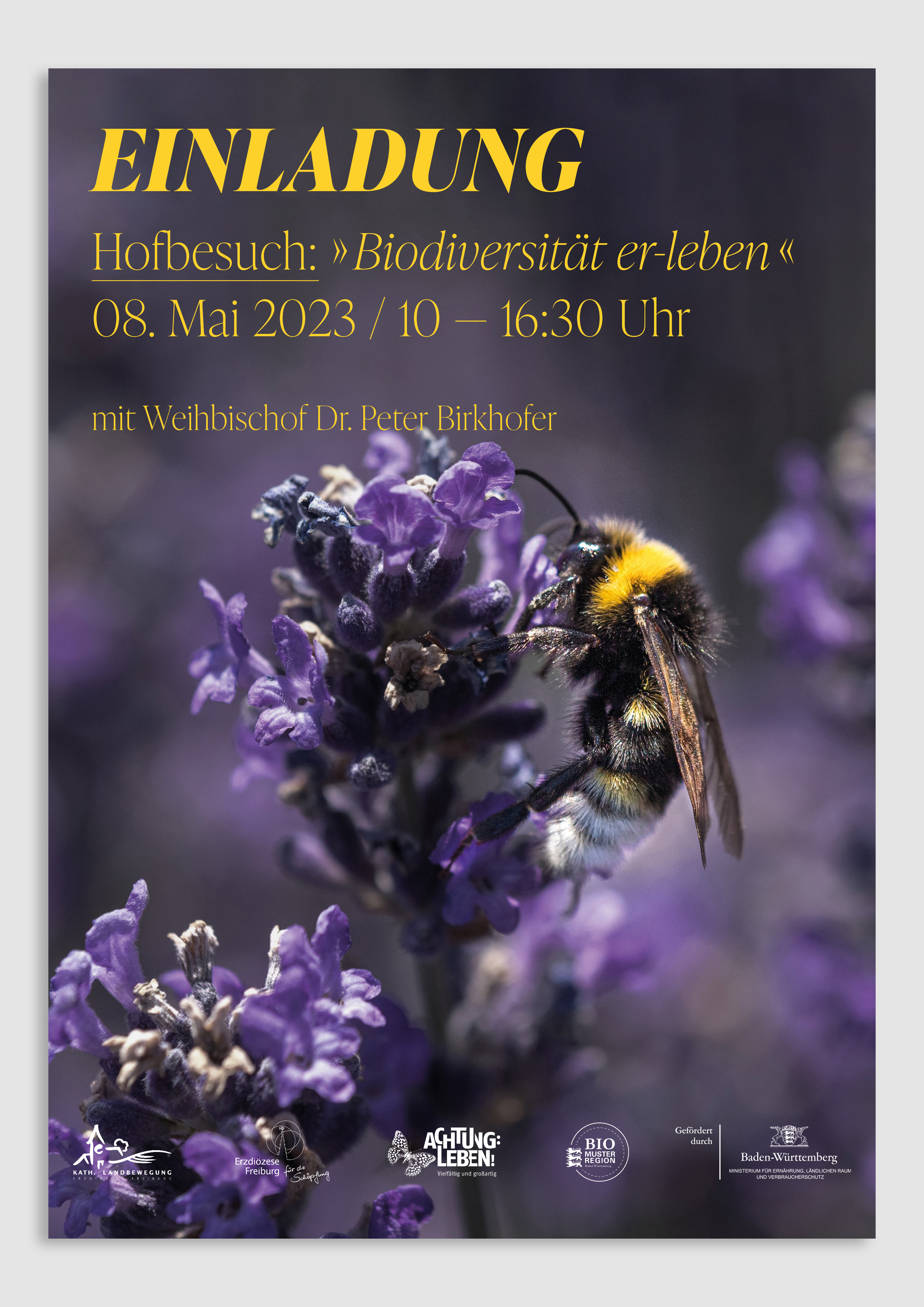 Die Katholische Landbewegung (KLB), die Diözesanstelle Schöpfung und Umwelt und die Bio-Musterregion Freiburg, laden Sie herzlich ein zum gemeinsamen Hofbesuch mit Einkehr, um miteinander Biodiversität in der Landwirtschaft zu er-leben. Der Hofbesuch ist Teil der Kampagne „Achtung Leben!“ des KLB-Bundesverbands zur Förderung und Bewahrung der Artenvielfalt.