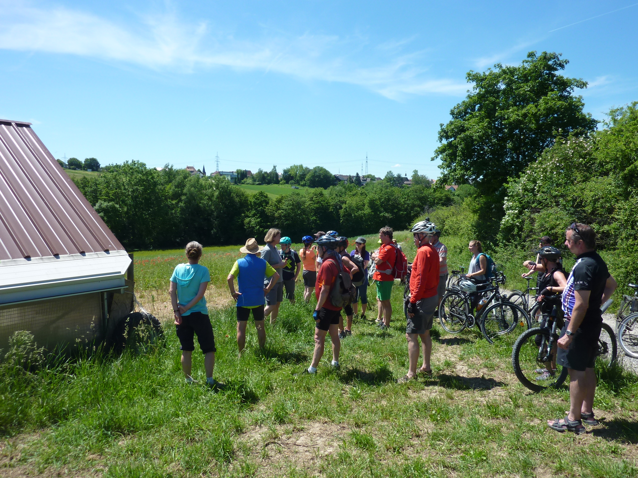 Die 20 Radfahrer nutzten die Chance, bei sonnigem und heißem Wetter zu drei ausgewählten Bio-Höfen zu radeln. Die Route führte von Pforzheim ausgehend über Ölbronn-Dürrn, Neulingen über Eisingen wieder zurück nach Pforzheim. Auf den Betrieben (der Bioland-Schäferei Golderer mit Bauernhof-Kindergarten, Schafen und Hofladen, dem Bioland-Hof Wilhelm mit Besenwirtschaft, Milchvieh, mobilen Hühnerställen und Futtererzeugung und der Demeter-Gärtnerei Auenhof mit Gemüsebau und Solidarischer Landwirtschaft) wurden die Radler eingeführt in die ökologische Wirtschaftsweise und konnten zudem die bio-regionalen Produkte vor Ort genießen.