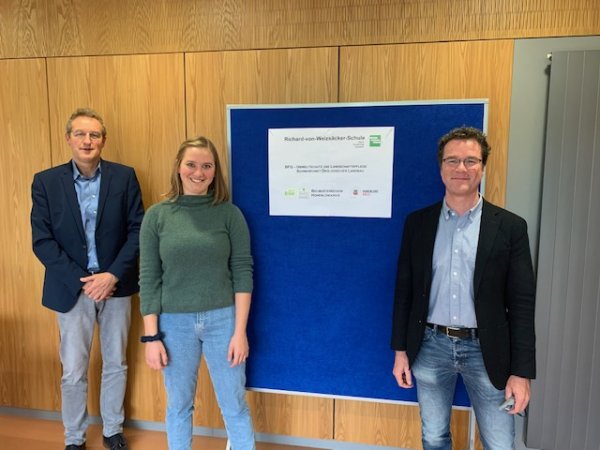 Harald Ebner ist Diplom-Agraringenieur und Bundestagsabgeordneter für die GRÜNEN – und somit bestens mit Theorie und Praxis der Landwirtschaftspolitik vertraut. Und weil es ihm darum geht, Landwirtschaft und Naturschutz auch in Hohenlohe als feste Zukunftsgrößen zu verankern, sucht er den Schulterschluss mit den Akteuren vor Ort, nämlich mit der Bio-Musterregion Hohenlohe und denjenigen, die für die Aus- und Fortbildung künftiger Landwirte verantwortlich zeichnen. In Franziska Frey, die als Regionalmanagerin für die Bio-Musterregion tätig ist, und Uwe Stiefel als Leiter der Richard-von-Weizsäcker-Schule fand er die idealen Partner für sein Anliegen. Besonders interessierte den Bundestagsabgeordneten die neue Ausbildung in der Zweijährigen Berufsfachschule (2BFQ) für Umweltschutz und Landschaftspflege, in der besondere Wert auf den Ökologischen Landbau gelegt wird. Franziska Frey betonte, dass ist diese Schulart für die Bio-Musterregion ein besonderer Projektbaustein ist, geht es doch darum, den ökologischen Landbau nicht nur in den Bereichen von Produktion und Handel zu verankern, sondern auch dessen Nachhaltigkeit zu gewährleisten. „Wir wollen Auszubildende im Bereich der Landwirtschaft für das Thema ‚Ökologischer Landbau‘ sensibilisieren, damit der Bedarf an Fachkräften in diesem Bereich gedeckt werden kann“, unterstrich Uwe Stiefel. Ebenso sollen Wege aufgezeigt werden, wie eine Umstellung in den Bereich Öko-Landbau möglich ist Franziska Frey skizzierte das Vorhaben, den Praxisbezug zu schaffen und ‚Best-Practise‘-Beispiele durch die Kooperation mit Biobetrieben in der Region Hohenlohe zu ermöglichen. Von diesen Aktivitäten vor Ort zeigte sich Harald Ebner sehr angetan, nicht zuletzt weil durch sie die Region Hohenlohe zum Ort interessanter Pilotprojekte Ökologischer Landwirtschaft wird.