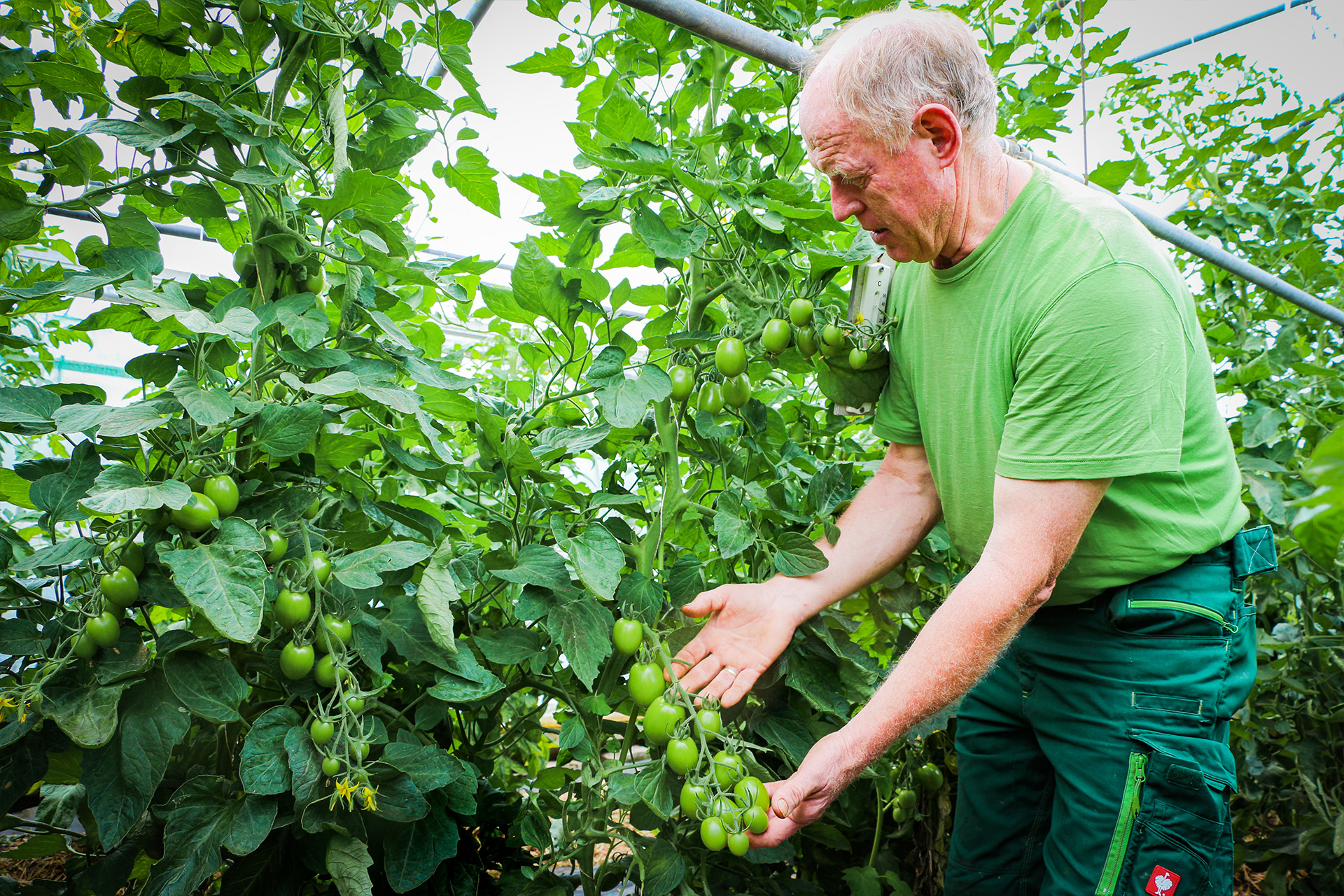 Erinnerungen aus einer anderen Zeit, von denen der vierfache Familienvater heute mit viel Gelassenheit erzählen kann. Seinen Biogemüsebau bewirtschaftet er gemeinsam mit seiner Frau Hildegard und einem Angestellten. Auf einem Hektar Fläche wird Gemüse angebaut, auf einem halben Hektar Kartoffeln. Außerdem stehen 800 Quadratmeter Anbaufläche in Gewächshäusern zur Verfügung. „Mein Ziel war es nie, einen riesigen Betrieb aufzubauen“, sagt Müller. „Ich habe mich immer als örtlicher Nahversorger verstanden und tue das bis heute.“