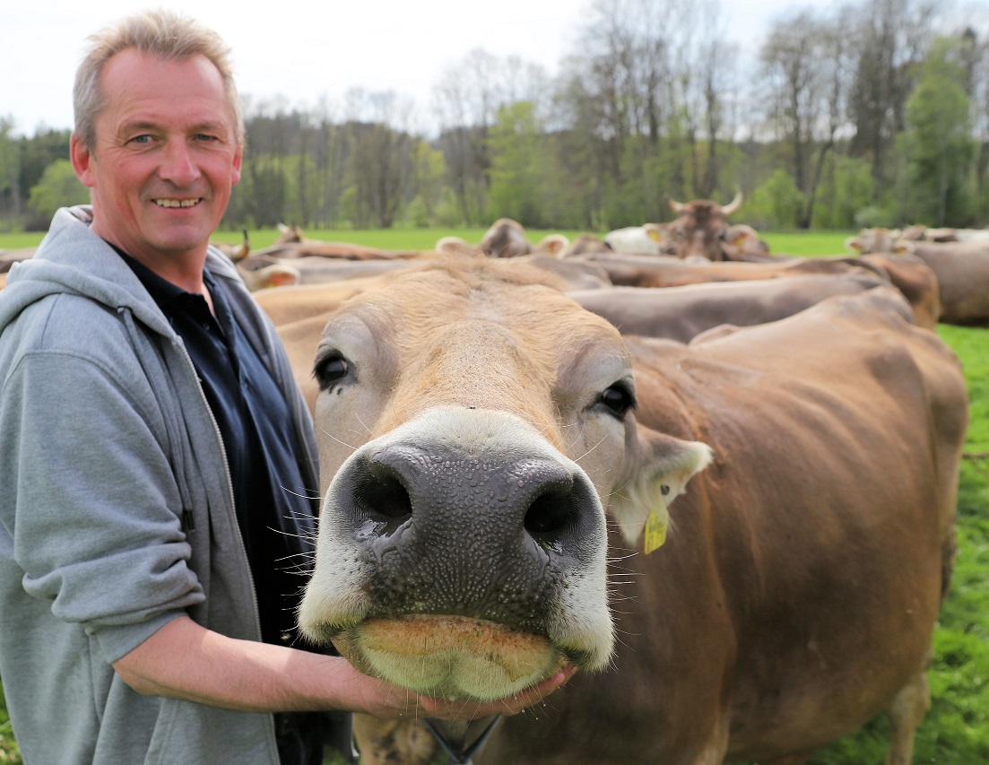 „Ich bin der letzte Ur-Niedernzeller“, schmunzelt Norbert Huchler. Er sitzt in der Sonne vorm Bauernhaus am südlichen Rand des Gutenzeller Ortsteils und zeigt auf ein Fenster im ersten Stock: Da oben ist er geboren – die letzte verbriefte Hausgeburt. Und er lebt noch immer hier, betreibt den Hof der Familie in vierter Generation und führt mit seinem Großcousin Stefan die Wendelhof GbR seit 1994 im ökologischen Landbau. Von und auf 115 Hektar Grünland erzeugen Milch und machen sie Biogas. Der Hof ist nach Bioland-Richtlinien zertifiziert.